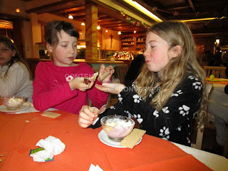 Na het prachtige weer van deze week hadden we weerpech vandaag. Het regende oude geiten en we zijn dus allen kletsnat geworden. De skipakken gaan dus kletsnat in de koffer. Maak thuis de wasmachine maar klaar.
