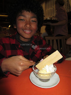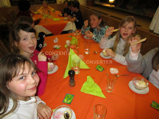 En met de bus zijn we naar het café gereden en we hebben lekker gegeten .